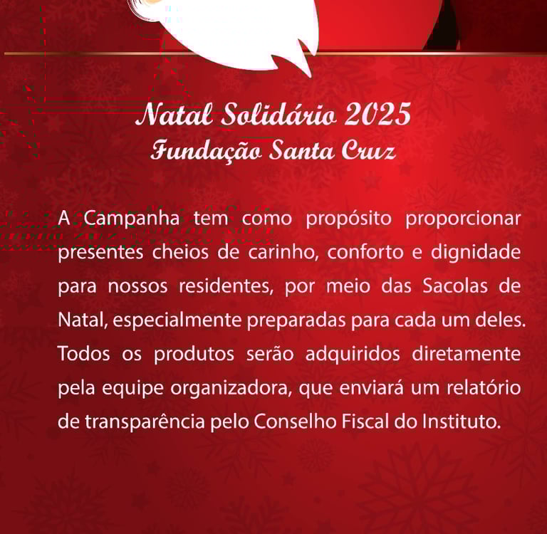 Neste Natal, convidamos você a espalhar amor, cuidado e alegria participando da Campanha de Apadrinhamento de Residentes da Fundação Santa Cruz!!!